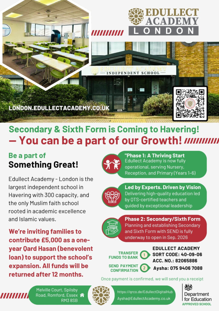 Edullect Academy – London is expanding to serve Secondary and Sixth Form incorporating SEND learners as part of it’s phase 2 development—and we are inviting you to be part of this transformative journey by giving us £5k or more to help establish the Secondary School and Sixth Form.