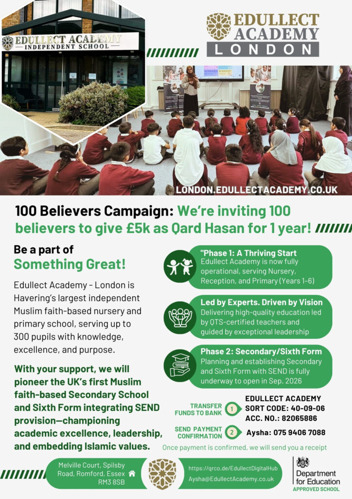 “ 100 Believers Campaign: Invitation to give £5k as Qard Hasan for one year ”