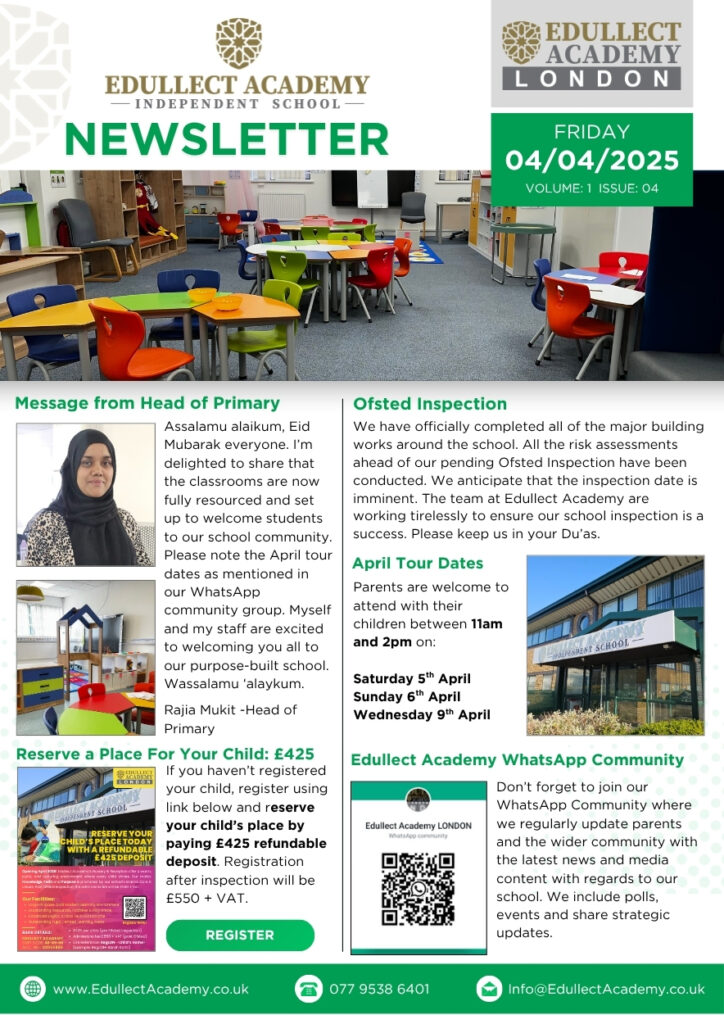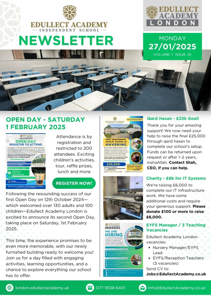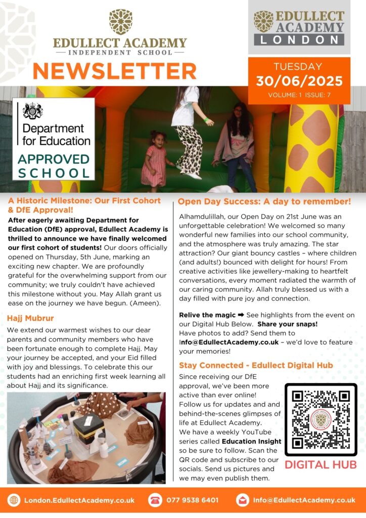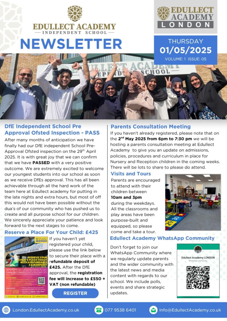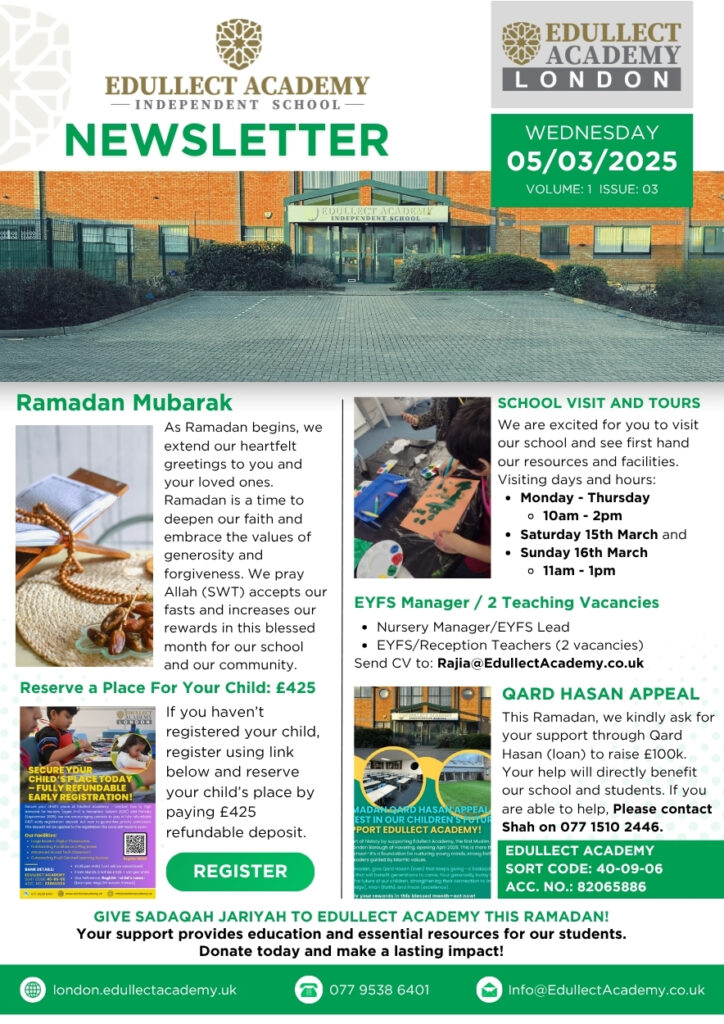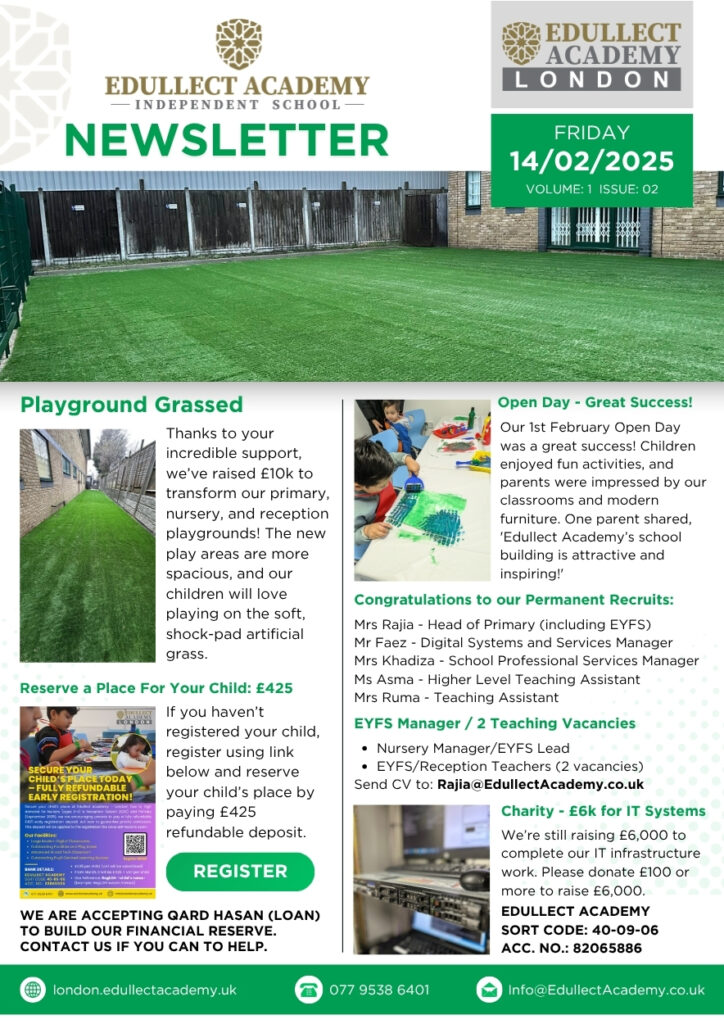 If there’s an achievement, event, or story you'd like us to feature in a future newsletter and share with the wider Edullect community, we’d love to hear from you! Please send your request to Miss Khadiza Chowdhury, our School Professional Services Manager, at Khadiza@EdullectAcademy.co.uk. Let’s celebrate success—together.