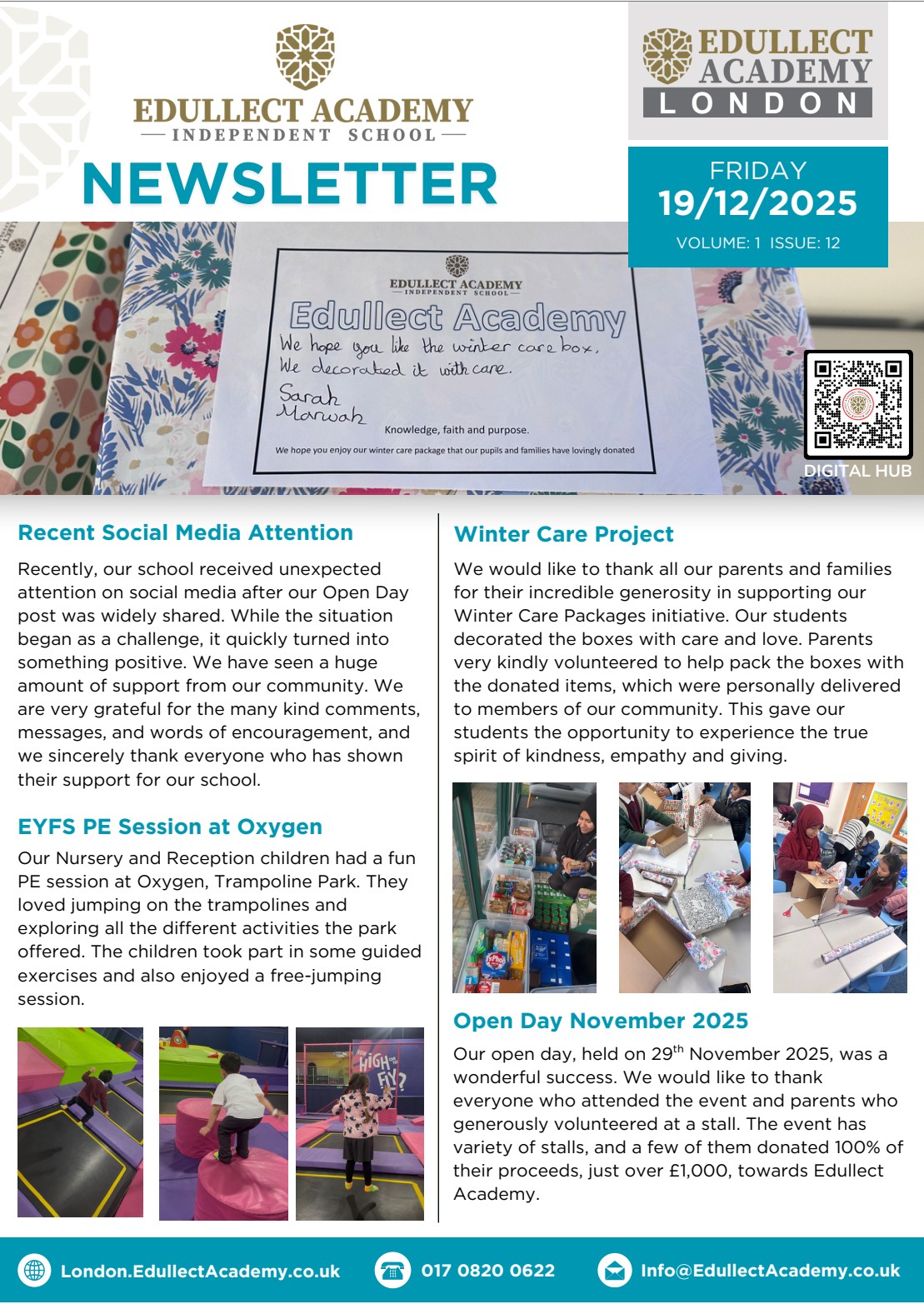 Please send your request to Miss Khadiza Chowdhury, our School Professional Services Manager, at Khadiza@EdullectAcademy.co.uk.