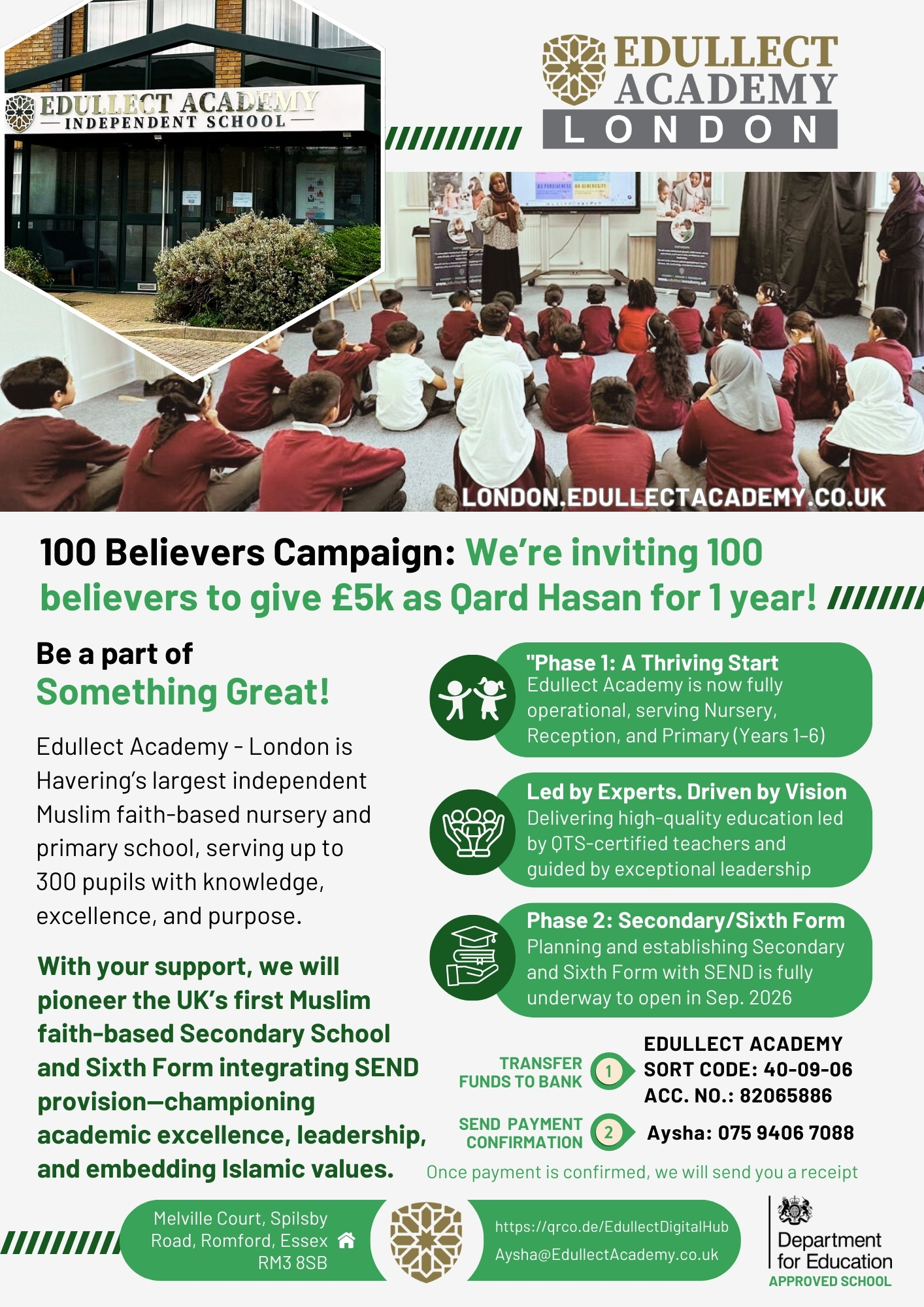 Support Our Growth — Invest in a Legacy of Learning. Invitation to give £5k as Qard Hasan for one year